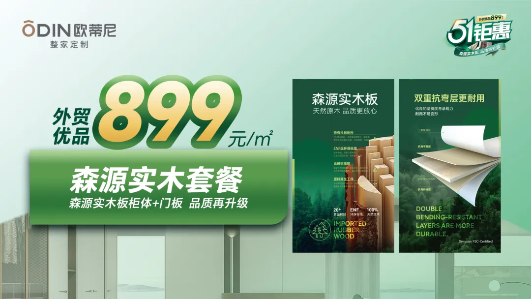 除此之外,歐蒂尼還針對不同消費群體推出多款爆款套餐,覆蓋實木、烤漆、成品家具等全品類。我們推出899元/㎡森源實木板套餐,板材采用2025年全新升級的ENF級杉木芯,通過雙重環(huán)保認證,母嬰家庭可安心使用。指接拼裝工藝+雙層抗彎層設(shè)計,承重性提升30%,抗變形能力遠超普通板材,兼具環(huán)保與耐用性。