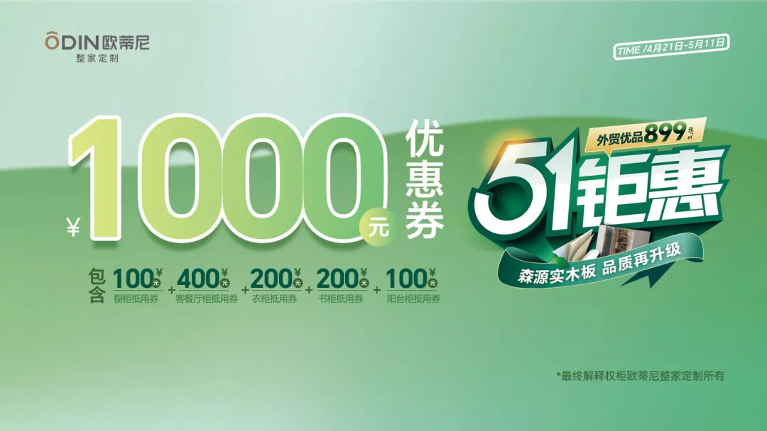 除了線下門店的鉅惠,歐蒂尼官方直播間還將開啟“51狂歡購”專場,100 元抵 1000 元抵扣券瘋狂派送,搶到就是賺到!我們最大限度讓利終端消費者,用品質(zhì)產(chǎn)品、感恩鉅惠行動為消費者的權(quán)益保駕護航!