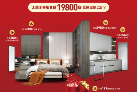 此次活動(dòng)歐蒂尼推出無醛禾香板全屋定制22㎡只需19800元超值鉅惠套餐。買1送5,購買此套餐,可免費(fèi)享受價(jià)值2800㎡榻榻米2㎡、價(jià)值1980元櫥柜2㎡地柜、價(jià)值2560元精品木門一扇和價(jià)值380元時(shí)尚穿衣鏡一面以及價(jià)值199元的精美禮品一份。