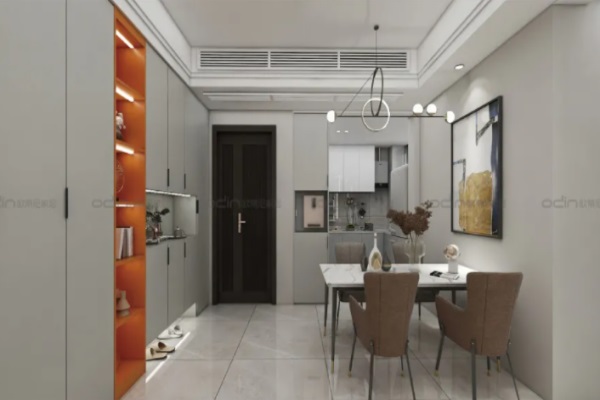 【設(shè)計(jì)說明】此方案為三室兩廳120㎡的住宅室內(nèi)設(shè)計(jì)方案,設(shè)計(jì)風(fēng)格主要以現(xiàn)代輕奢為主,根據(jù)戶型的分區(qū),進(jìn)行每個(gè)區(qū)域的空間設(shè)計(jì);整體顏色根據(jù)啞光淺灰的為主調(diào)來設(shè)計(jì)整個(gè)空間。每個(gè)區(qū)域根據(jù)入住的人員進(jìn)行設(shè)計(jì)。設(shè)計(jì)師結(jié)合愛馬仕橙來提高整體的色調(diào),使得整體的色調(diào)不會(huì)過于灰,用玻璃門來延展客餐廳的通透性。