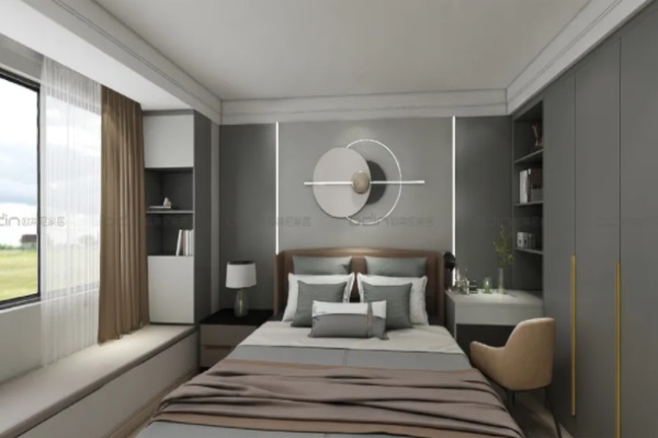 【設(shè)計(jì)說明】此方案為三室兩廳107方的住宅室內(nèi)設(shè)計(jì)方案,西邊套,絕佳的采光。設(shè)計(jì)風(fēng)格以現(xiàn)代輕奢為主,整體顏色根據(jù)啞光淺灰的主調(diào)來設(shè)計(jì)整個(gè)空間。主臥背景分色,兩邊啞光深灰,中間啞光淺灰,跟邊上的衣柜完美呼應(yīng)。書桌從柜體里面延伸出來,兼具書寫及梳妝用途。飄窗柜具儲(chǔ)物及裝飾作用,板子用啞光深灰及啞光淺灰,保持整體統(tǒng)一。