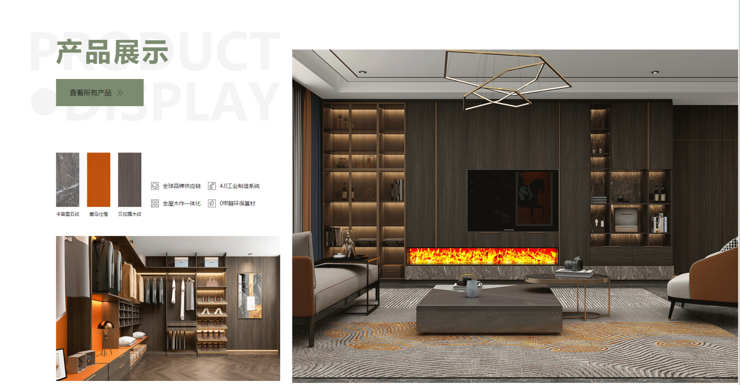 3、產(chǎn)品按全屋定制、木門墻板進(jìn)行分類展示,方便用戶瀏覽;