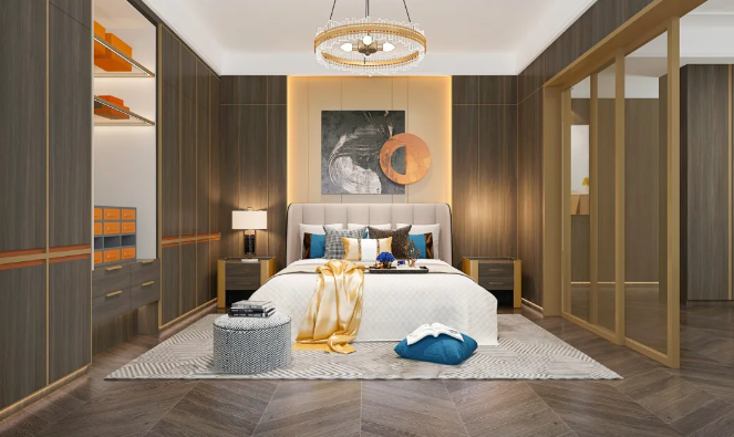 雖說嵌入式衣柜有不可隨意移動的缺點,但確是收納雜物與整理空間的好幫手,還能平整室內(nèi)空間,并且可以隨心所欲地定制樣式、布局,設(shè)計理想的款式和風(fēng)格。