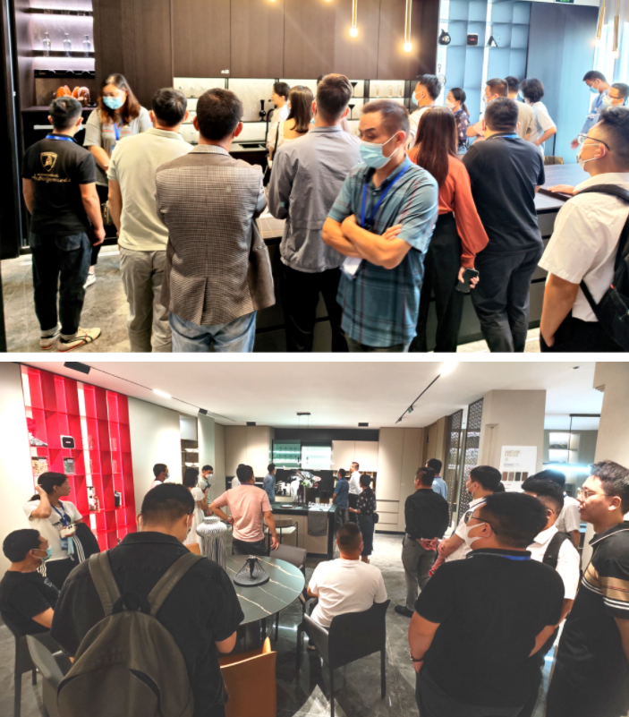 品質(zhì)卓越的產(chǎn)品、標(biāo)準(zhǔn)化的生產(chǎn)基地是展示企業(yè)實(shí)力的重要場所,是企業(yè)的根本。當(dāng)天上午,經(jīng)銷商們先后參觀了歐蒂尼下塘生產(chǎn)基地和總部新品展廳。生產(chǎn)管理自動化、生產(chǎn)工藝智能化、生產(chǎn)數(shù)據(jù)集成化以及特色的產(chǎn)品陳列搭配和高效的倉儲空間布局讓現(xiàn)場的意向經(jīng)銷商們贊嘆不已,給予了充分的肯定。