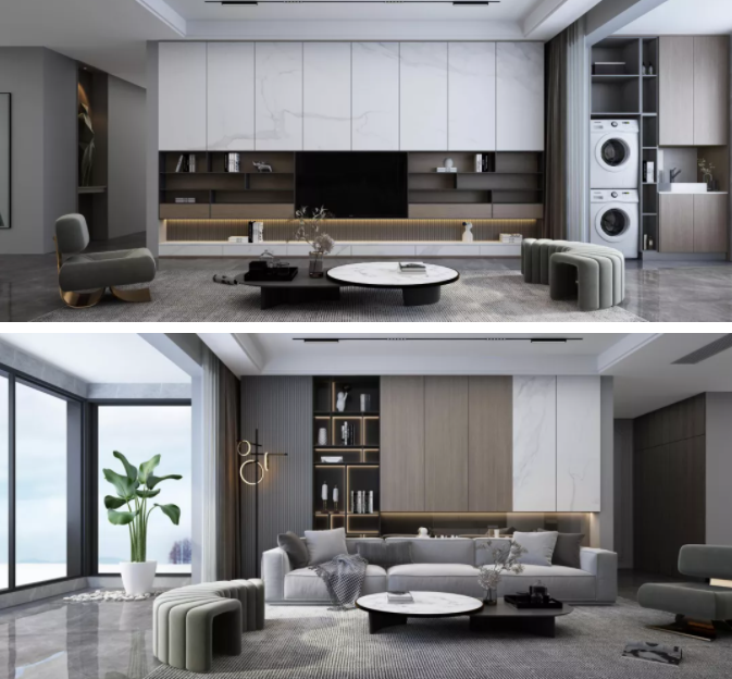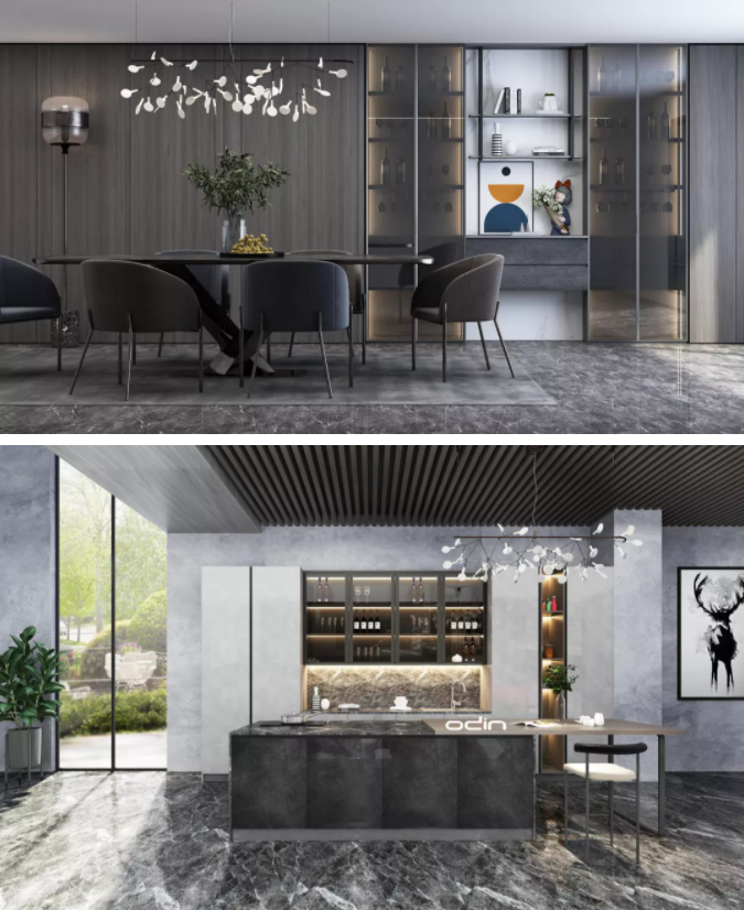 生活需要層次,此款新品主要以深淺三色搭配并創(chuàng)新采用多層次間架設(shè)計(jì),豐富視覺(jué)更能給生活帶來(lái)更多樂(lè)趣。門板采用的是莫蘭迪色系門板,使用超柔膚感材質(zhì),整體以高級(jí)灰色為主色調(diào),讓整個(gè)家居空間在低調(diào)奢華之中透露出舒適自然。多材料結(jié)合 鋁框玻門、木紋、石紋、等多材料混搭,整體質(zhì)感多樣但又和諧自然地融合在一起,提升產(chǎn)品的優(yōu)雅氣質(zhì)。